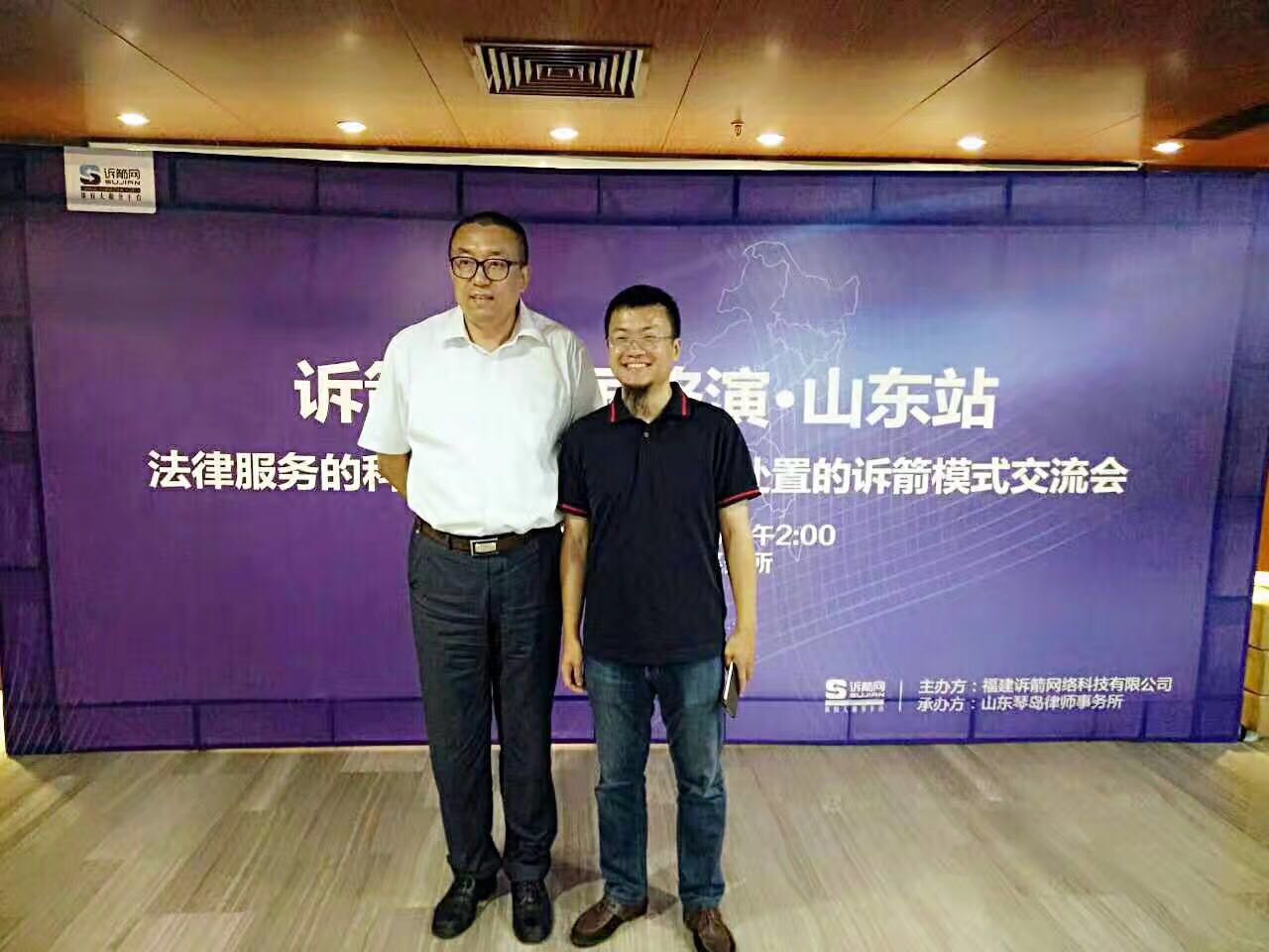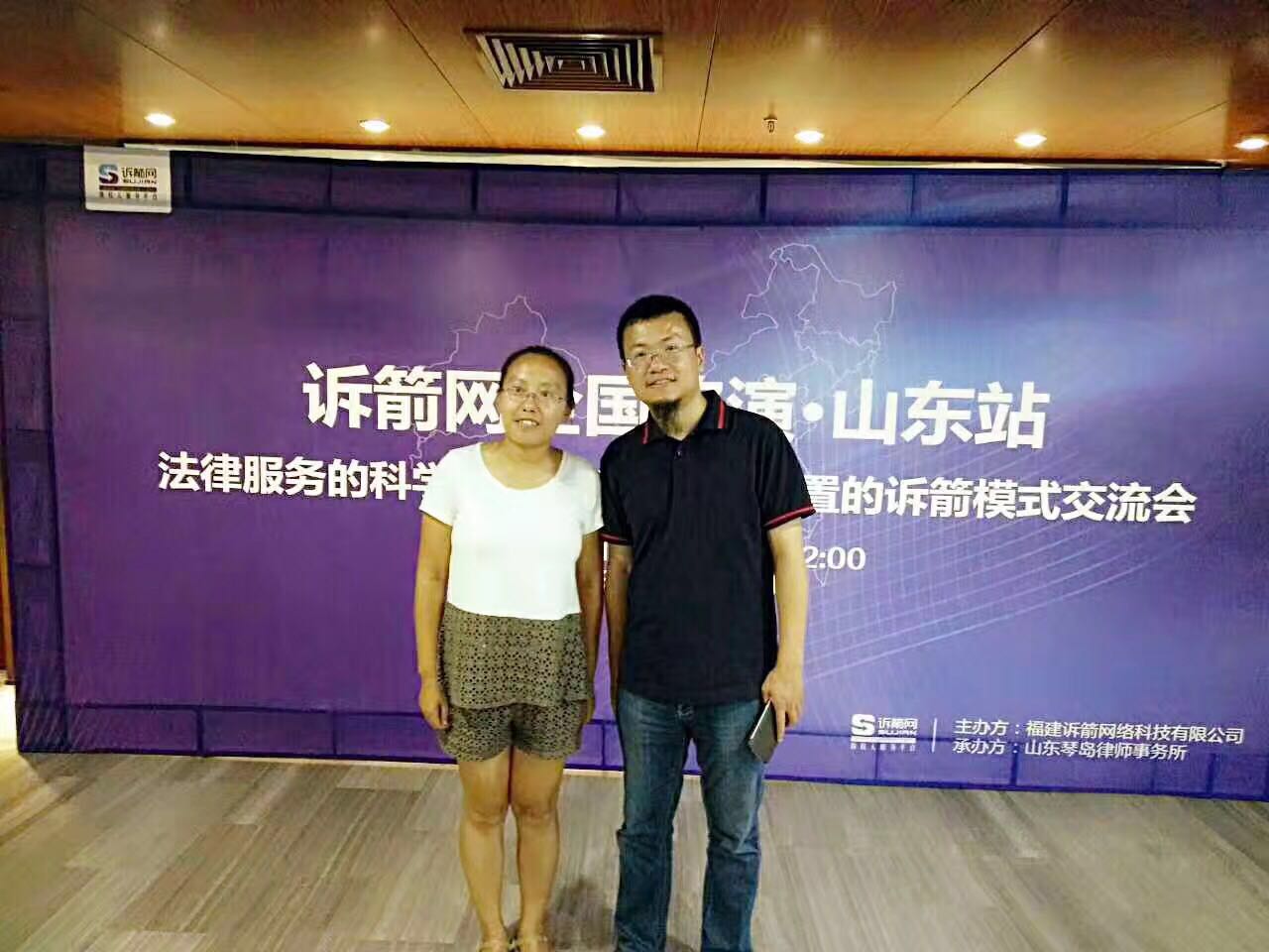 2017年7月,福建诉箭网络科技有限公司一行来到青岛,开展全国路演山东站“法律服务的科学管理暨不良资产处置的诉箭模式交流会”,本次会议由多名律所主任作为嘉宾列席,山东华政律师事务所李嘉奎主任、于娜娜律师应邀出席。