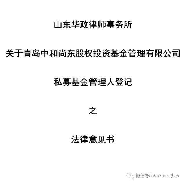 近日,我所李嘉奎主任律师、张奎国律师接受青岛中和尚东股权投资基金管理有限公司(简称:中和尚东投资)的委托,就其申请私募基金管理人登记出具《法律意见书》。