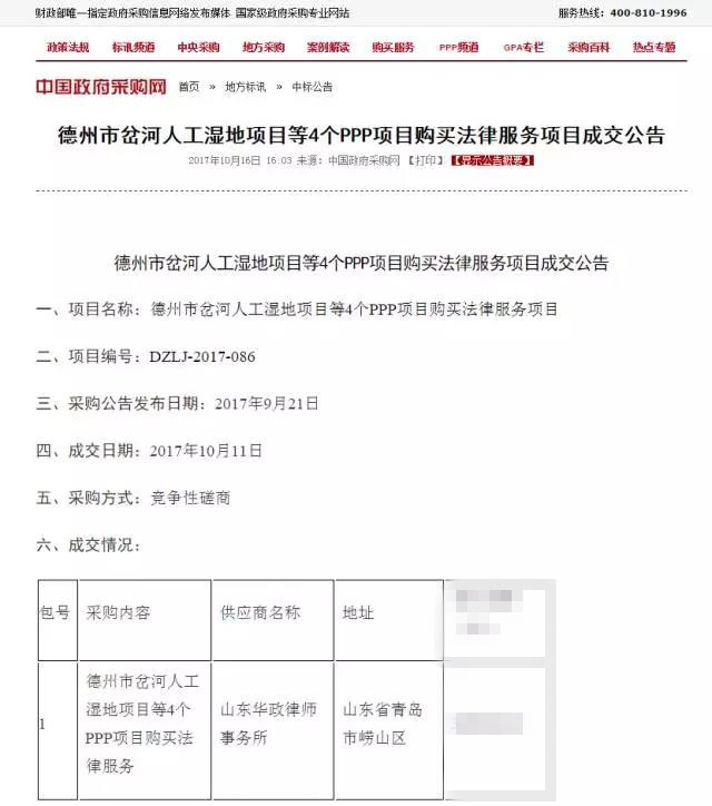 近日,山东华政律师事务所PPP业务团队以绝对优势成功中标德州市岔河人工湿地等四个市级PPP项目的全过程法律顾问业务。
