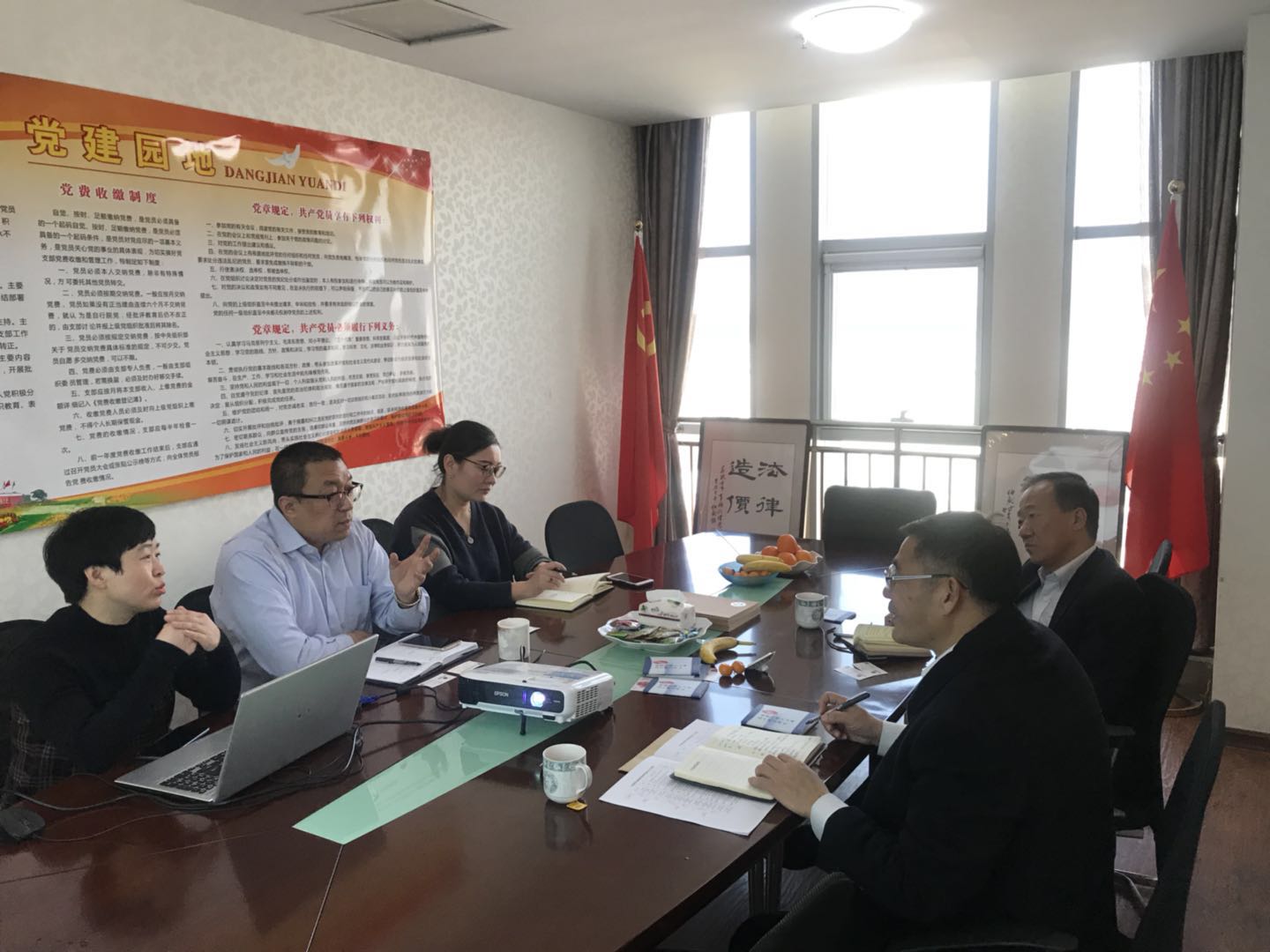 2017年12月21日,中共青岛市崂山区委员会区委常委、政法委书记王振竹书记、崂山区委政法委政治处江守杰主任莅临山东华政律师事务所交流指导,山东华政律师事务所李嘉奎主任、于霞副主任、南淑凤副主任进行了接待。