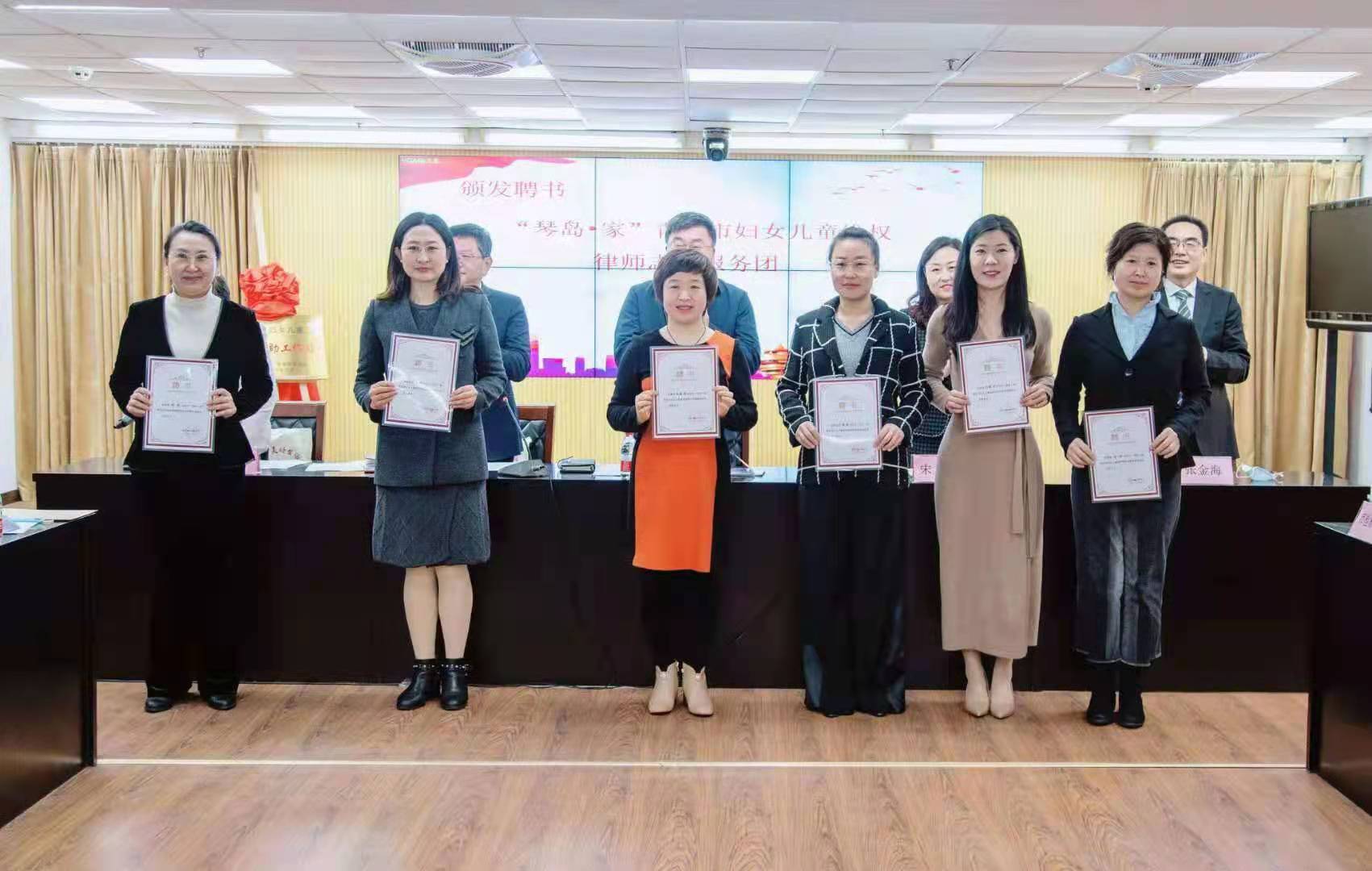 仪式上, 市司法局党委委员、副局长李文渊宣读了《青岛市司法局关于同意设立青岛市妇女儿童法律援助工作站的复函》。与会领导共同为青岛市妇女儿童法律援助工作站揭牌,为青岛市妇女儿童法律援助案件受理点授牌,为“琴岛•家”青岛市妇女儿童维权律师志愿服务团成员代表颁发了聘书。仪式结束后,举办了“反家庭暴力 青岛在行动”座谈会。