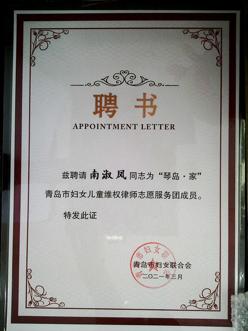 2021年3月4日,青岛市司法局、青岛市妇联联合举办了青岛市妇女儿童法律援助工作站揭牌仪式暨“反家庭暴力 青岛在行动”座谈会,推动反家暴“一法一条例”等相关法律法规更好贯彻实施,切实维护妇女儿童合法权益。市司法局党委书记、局长万振东,市妇联党组书记、主席宋立春出席活动并讲话。市司法局党委委员、副局长李文渊,市律师协会会长张金海,市中级人民法院、市检察院、市公安局相关处室负责人,区市妇联分管主席,以及市妇女儿童法律援助案件受理点、“琴岛•家”市妇女儿童维权律师志愿服务团成员代表参加了活动,山东华政律师事务所南淑凤副主任作为代表参加本次活动。