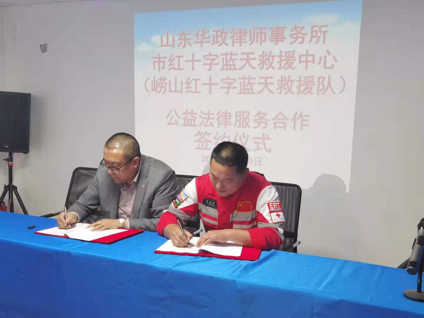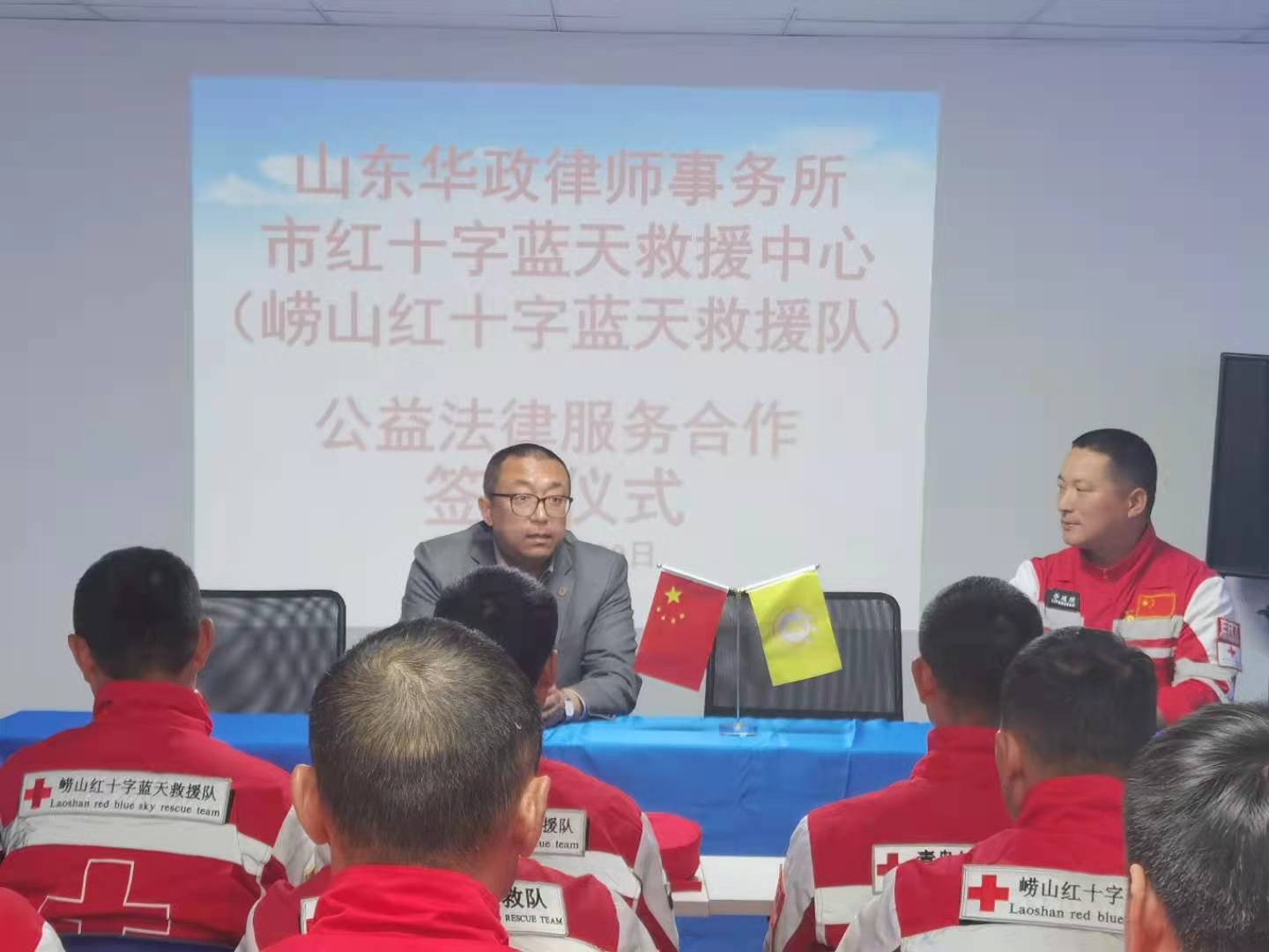 活动上,山东华政律师事务所李嘉奎主任代表与青岛市红十字蓝天救援中心(崂山红十字蓝天救援队)签订公益法律服务协议,下一步就青岛市红十字蓝天救援中心(崂山红十字蓝天救援队)组织运行及发展方面的相关事宜由“华政益法”团队提供法律等全过程服务,实现互利共赢,携手共谋新发展。