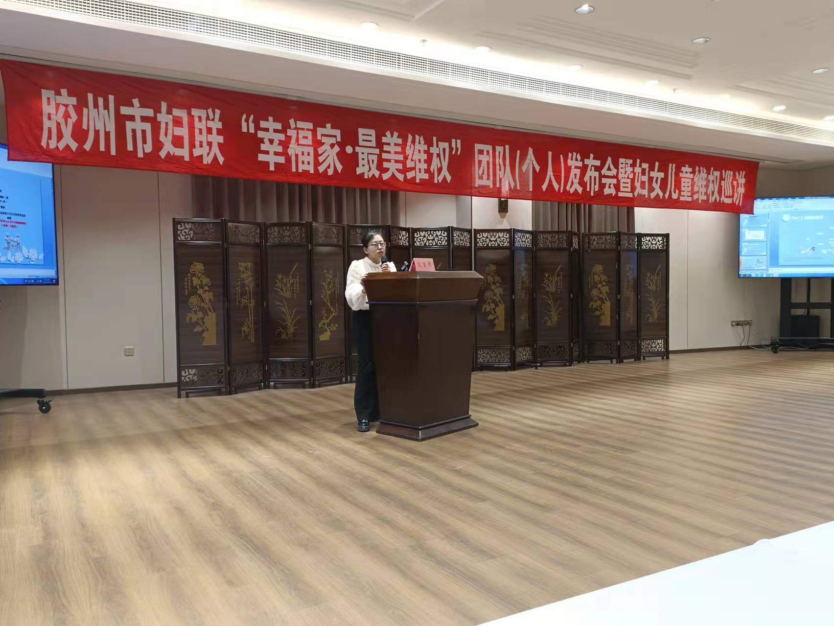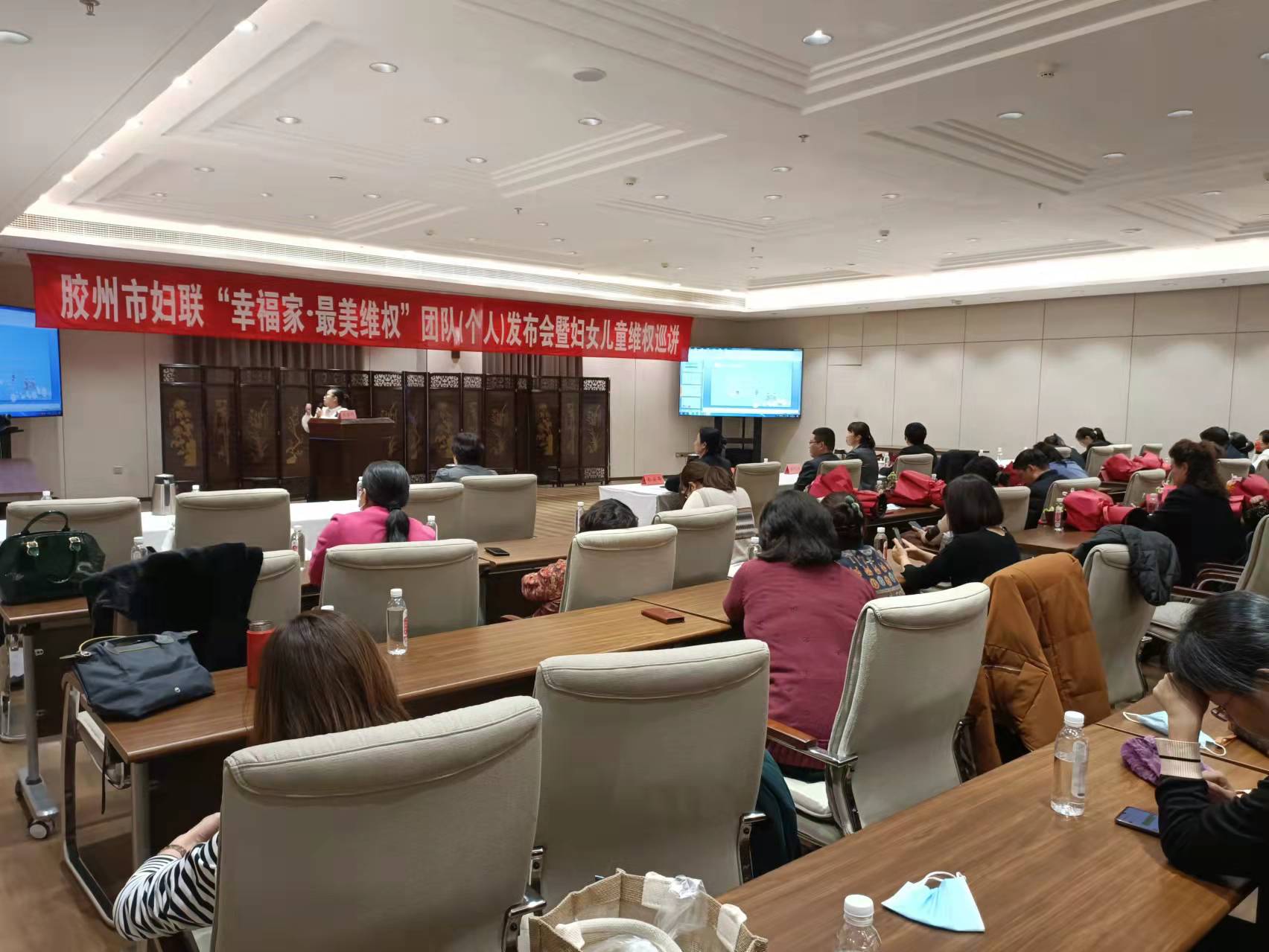 2021年12月27日下午,山东华政律师事务所于娜娜律师应青岛市妇联邀请,参与胶州市妇联举办的“幸福家•最美维权”团队(个人)发布会暨妇女儿童巡讲活动。