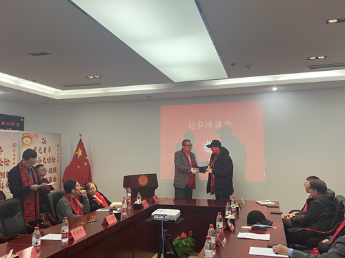 座谈会上青岛中域拍卖经纪有限公司总经理李培岩在迎春活动现场为山东华政律师事务所赠送2022新年祝福礼物,双方就未来合作方向等达成了初步共识。