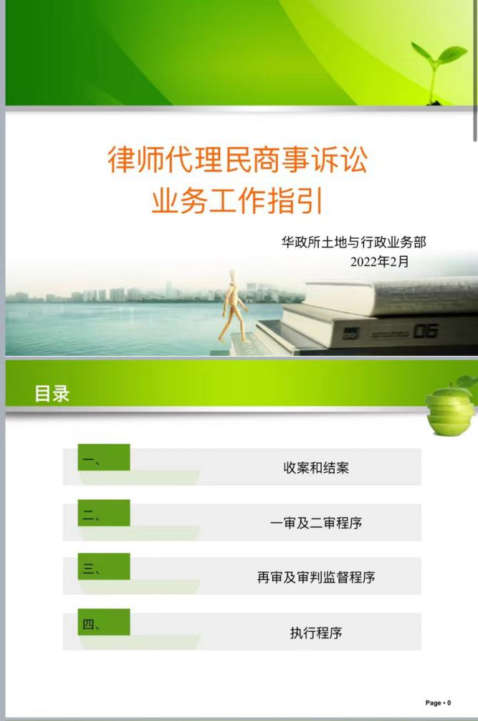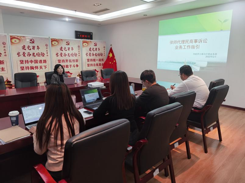 2022年春节过后第一周,山东华政律师事务所土地与行政业务团队开展启动综合性业务培训系列课程,2022年2月11日,团队负责人王毳毳律师为本部门讲授了《律师办理民商事诉讼业务工作指引》。王毳毳律师结合自身从业经验,从理论和实践的不同角度并结合现实案例为大家分析解读民商事诉讼业务过程,让大家学完后可真正运用到实际工作当中。