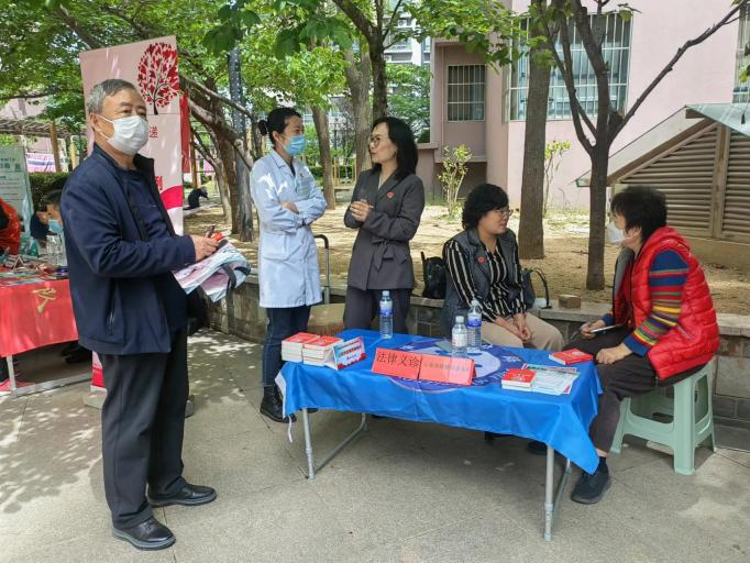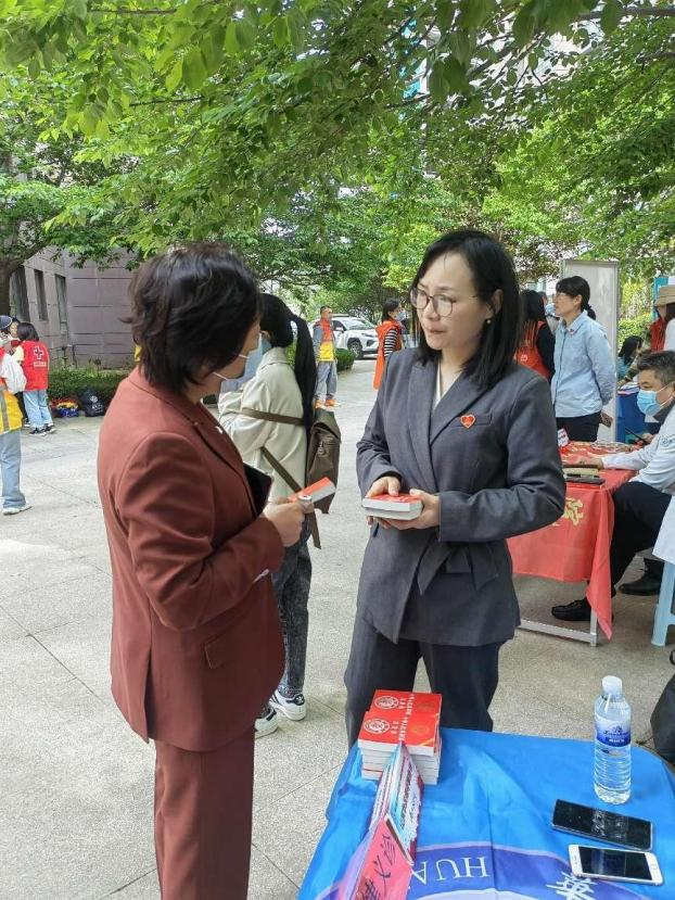 2023年5月8日是第76个“世界红十字日”,崂山区红十字会联合金家岭街道红十字会和石岭路社区举办“关爱生命 人道同行” 世界红十字日主题公益日活动,现场有30余家爱心单位和公益组织为群众开展各类服务活动。山东华政律师事务所副主任、山东华政(城阳)律师事务所联席主任王毳毳律师,山东华政律师事务所副主任、民刑部主任李玉娜律师,山东华政律师事务所桥沐工作室宋晓娜律师、心理咨询师到场为居民提供“法律义诊”服务。