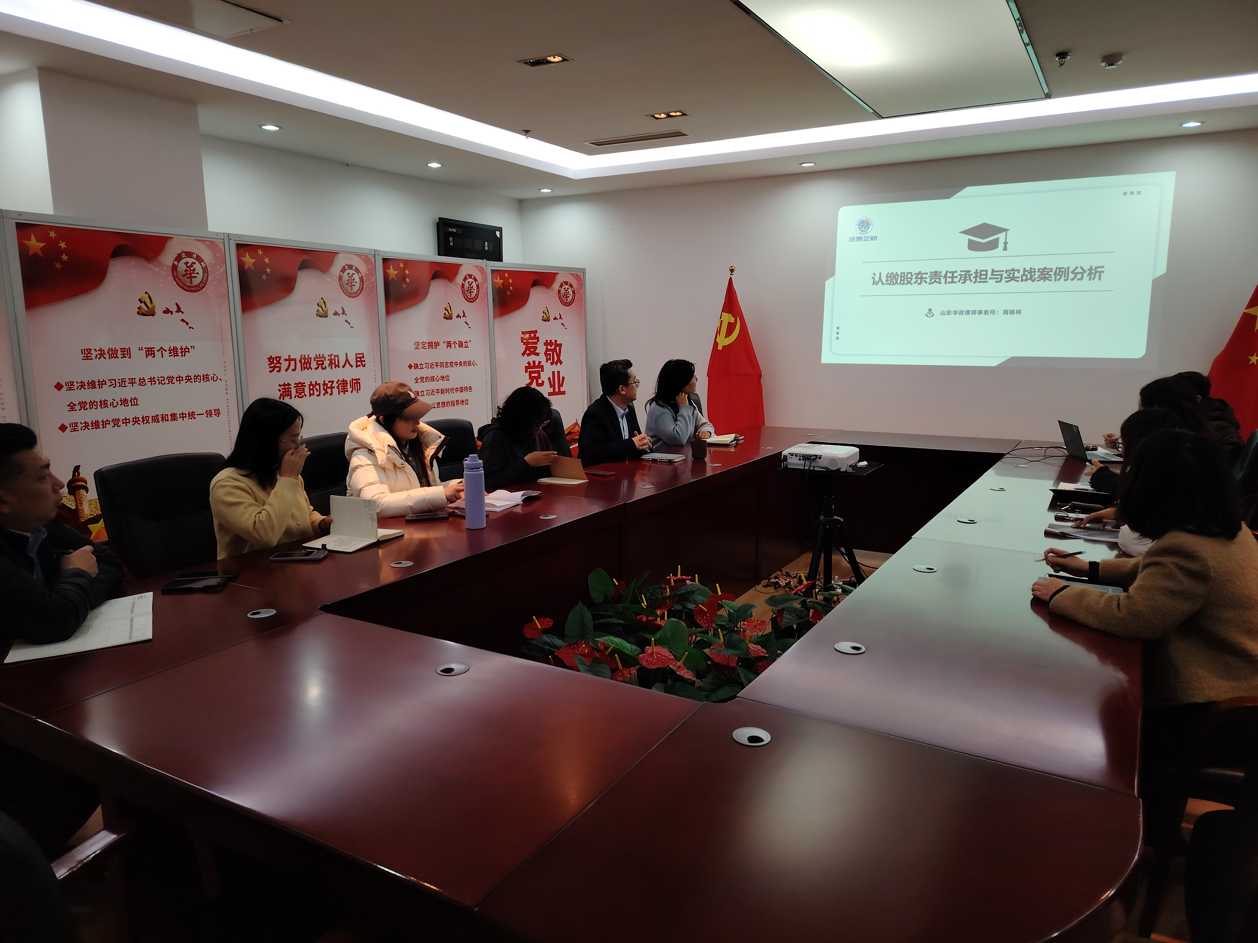 为助力企业厘清认缴股东责任相关法律风险,切实维护企业合法权益,优化法治化营商环境,2025年12月31日,由青岛市司法局指导、山东华政律师事务所主办的认缴股东责任承担与实战案例分析专题讲座在崂山区株洲路187号西区华仁大厦6层会议室成功举办。本次讲座由周杨林律师担任主讲人,吸引了众多企业代表到场参与。