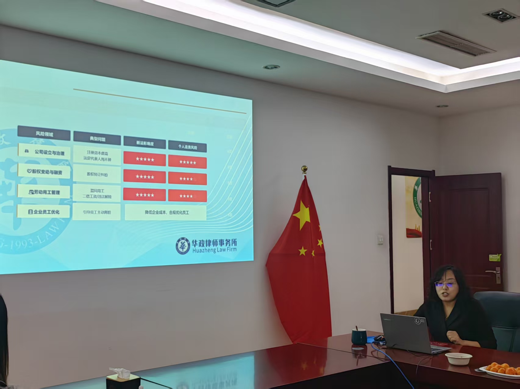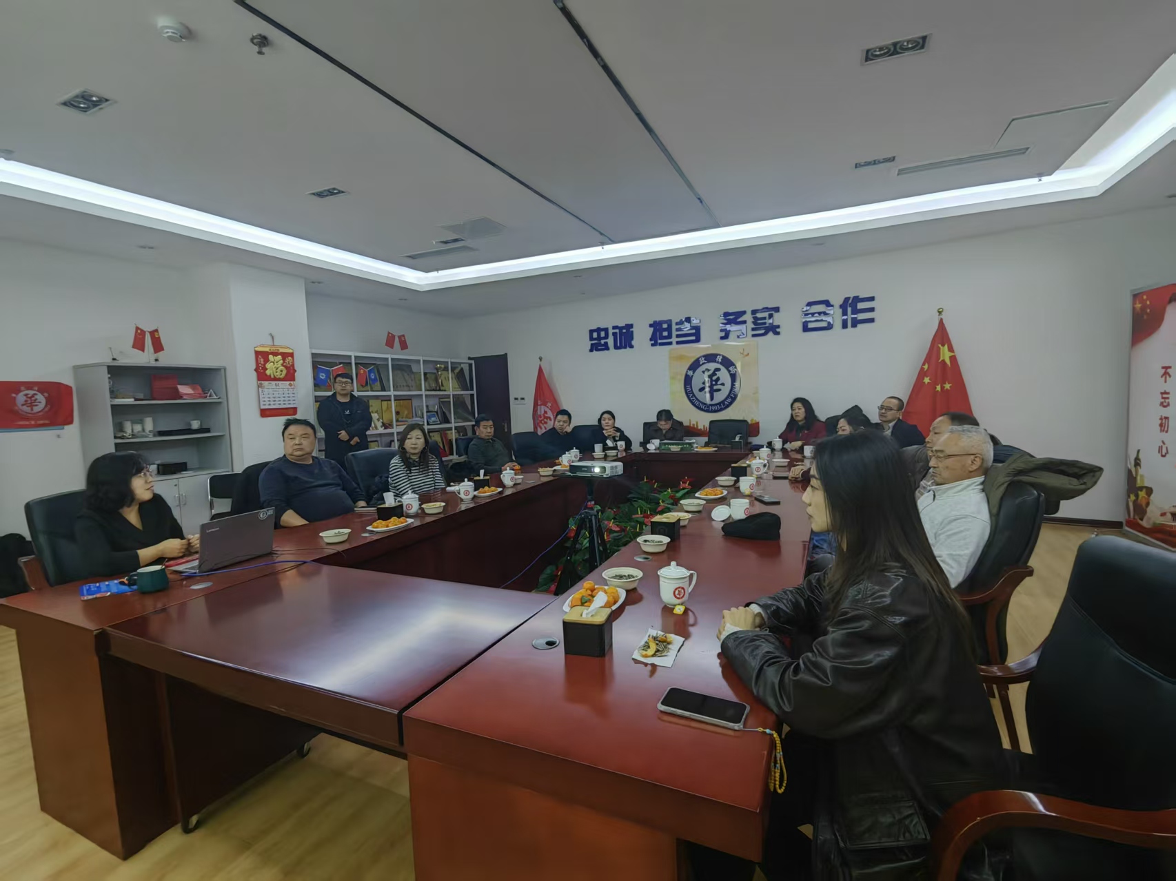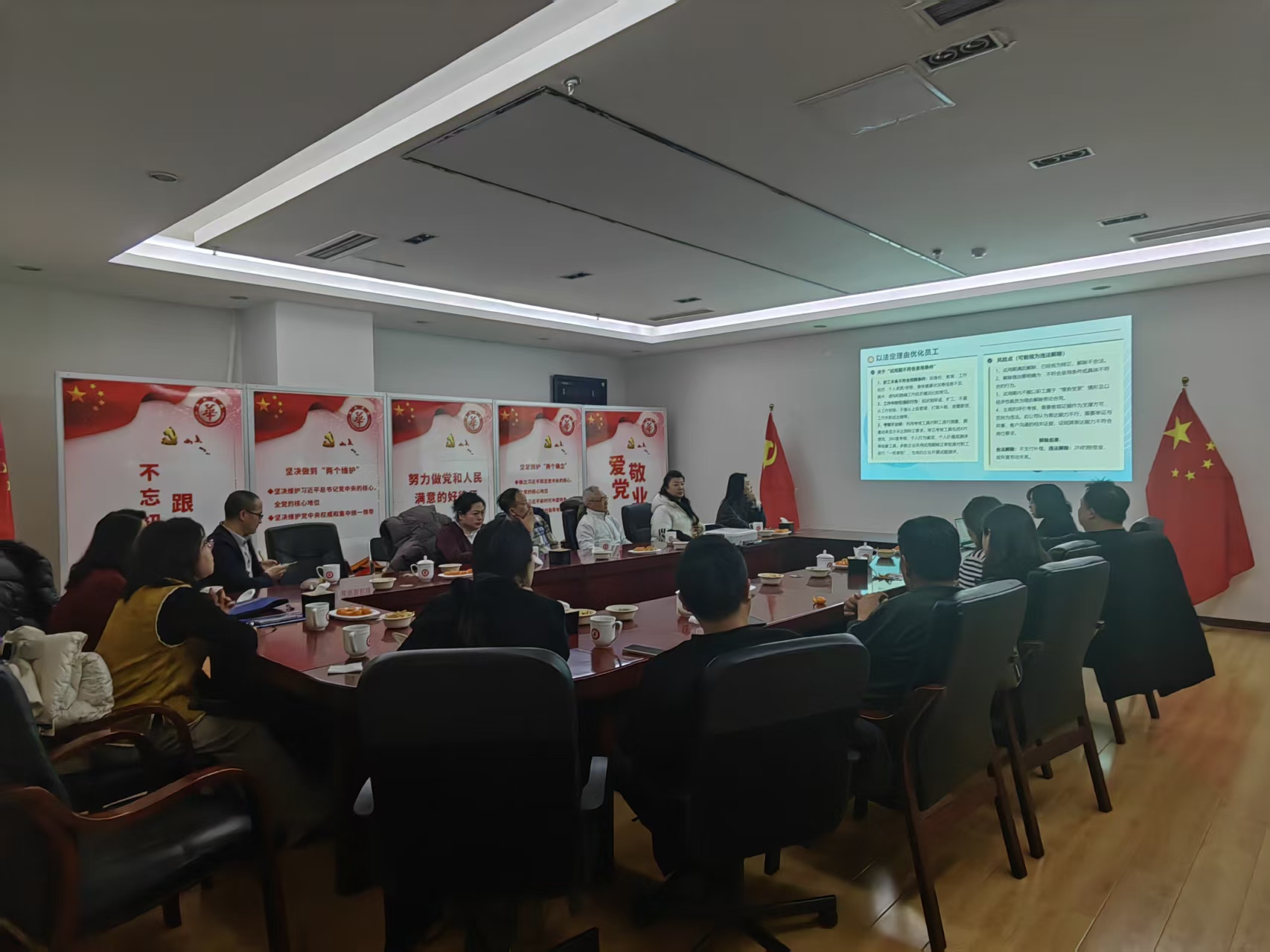 为助力中小企业精准把握法律新规要义,有效防范经营中的法律风险,2026年1月14日,由青岛市司法局指导、山东华政律师事务所主办的“中小企业合规与法律风险防控实务——新《公司法》与《劳动合同法》司法解释(二)变动解读”专题讲座在青岛市崂山区株洲路187号西区华仁大厦6层会议室成功举办。本次讲座由山东华政律师事务所合伙人、主任于娜娜律师担任主讲人,近二十名德申会的企业代表受邀参与。